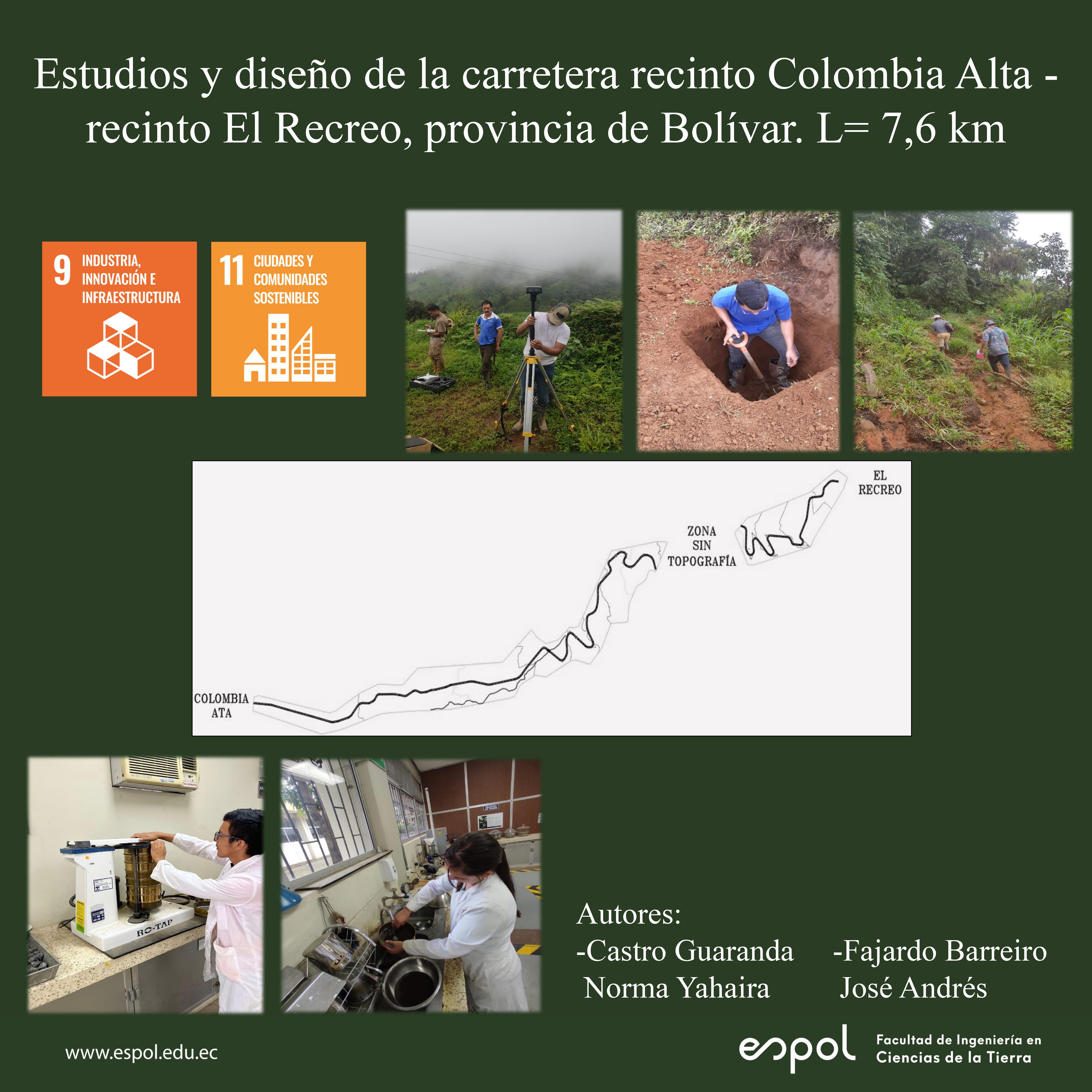 Estudios y diseño de la carretera recinto Colombia Alta - recinto El Recreo, provincia de Bolívar. L = 7.6 km