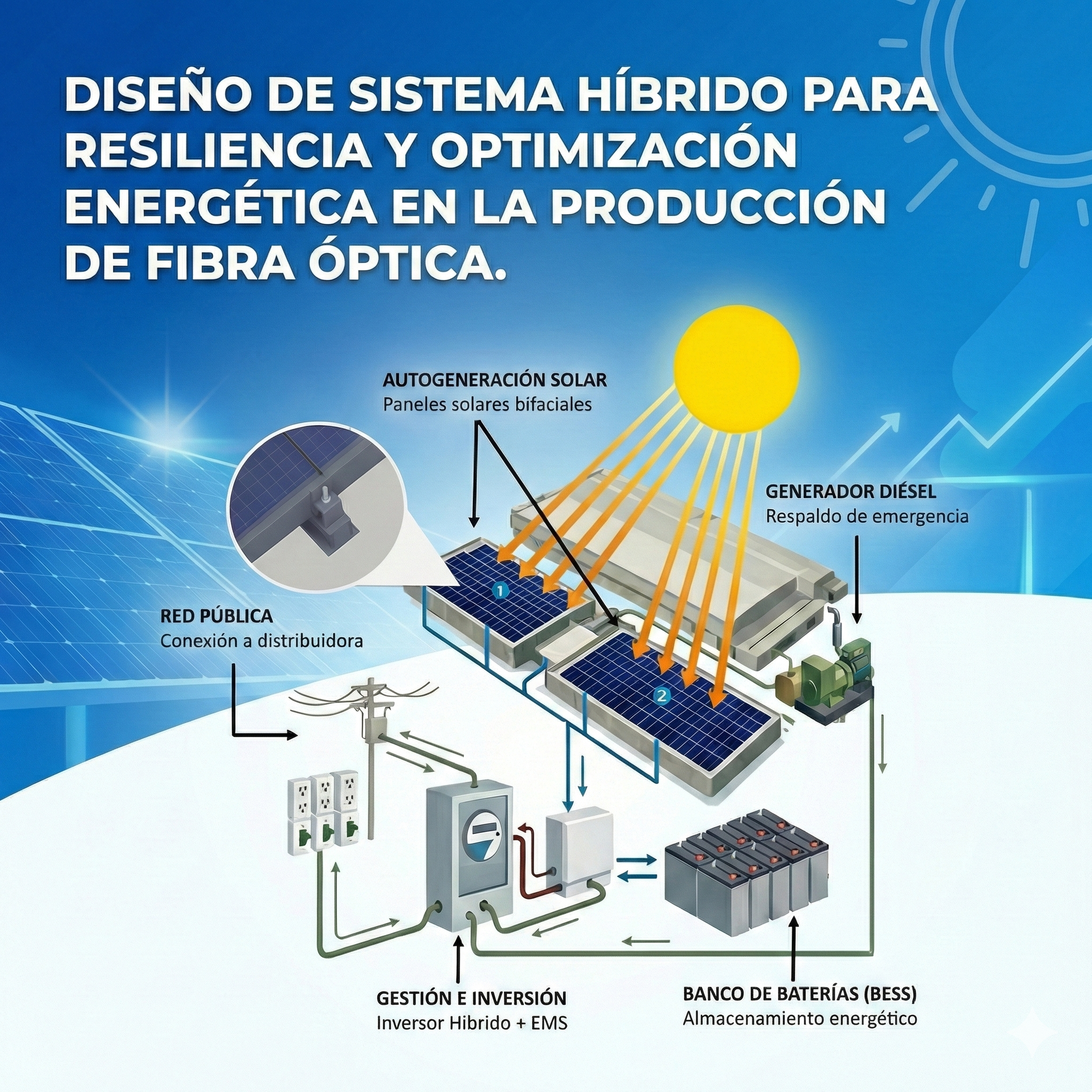 Diseño de sistema híbrido para resiliencia y optimización energética en la producción de fibra óptica