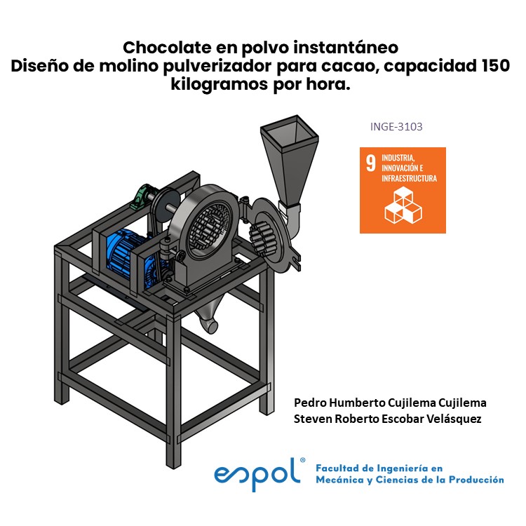 Diseño de molino pulverizador para cacao, capacidad 150 kilogramos por hora